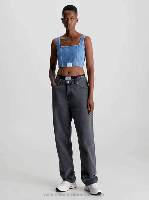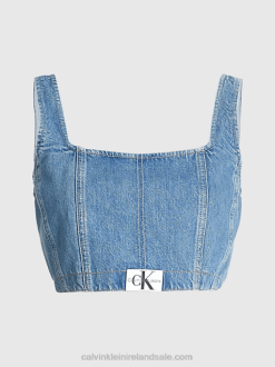 F64Z27 Denim Medium Women Calvin Klein Denim Zip Up Bralette Top