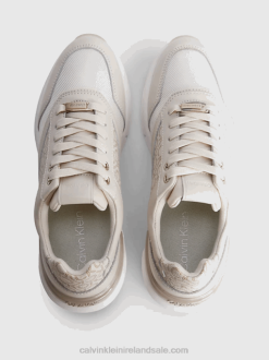 F64Z95 Black Mono Women Calvin Klein Leather Logo Trainers