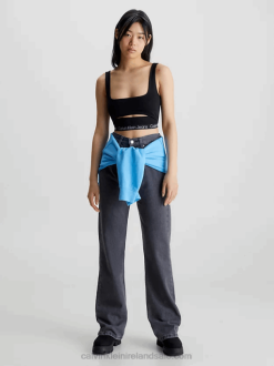 F64Z48 Black Women Calvin Klein Plus Size Long T-shirt Dress